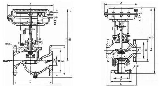 本系列產品有薄膜式、活塞式兩種。閥體結構有單座、套筒、雙座(二位三通)三種,密封形式有填料密封和波紋管密封兩種,產品公稱壓力等級有PN10、16、40、64四種,公稱口徑范圍DN20~200mm。適用流體溫度由-60~450℃。泄漏量等級為IV級或Ⅵ級。流量特性為快開。