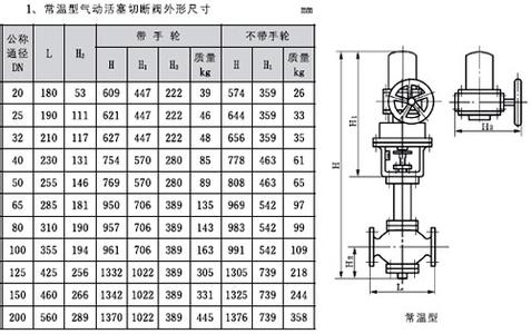氣動切斷閥性能參數: