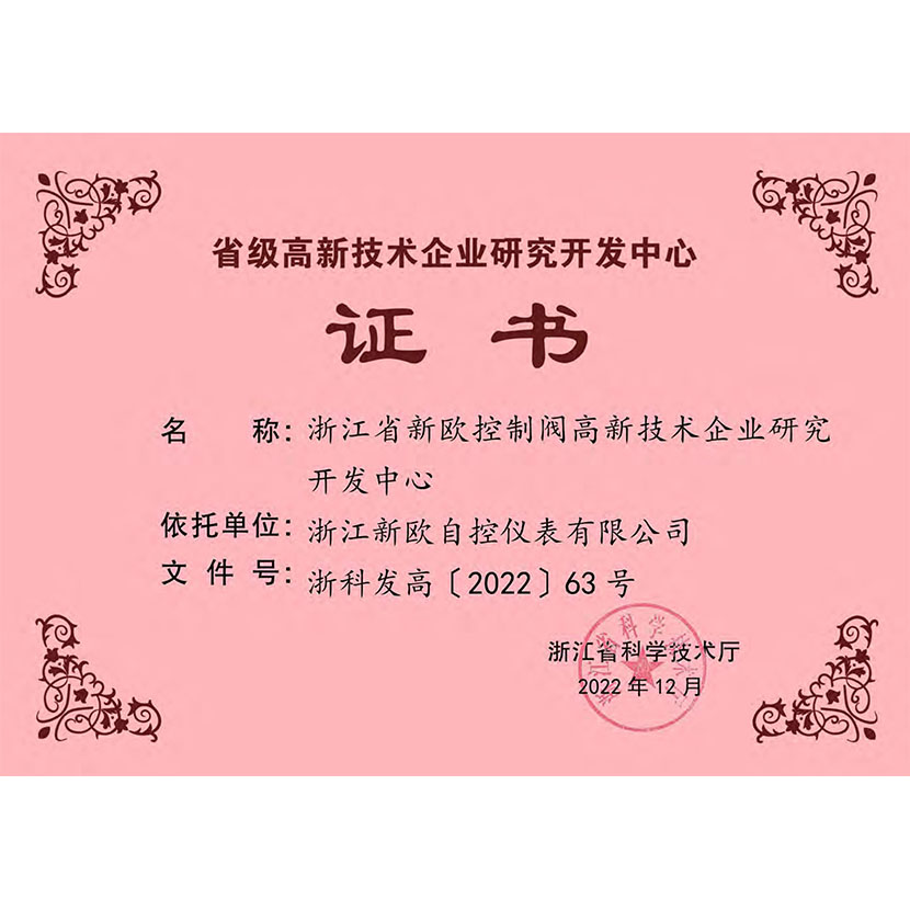 浙江省省級(jí)研發(fā)中心證書